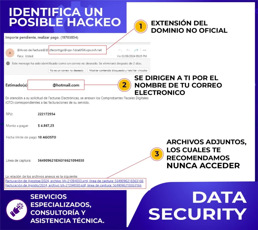 La seguridad de tu información es crucial, y en Deunclick Soluciones Digitales queremos ayudarte a mantenerte protegido. Aquí te damos algunos consejos para identificar un intento de hackeo a través de correo electrónico: